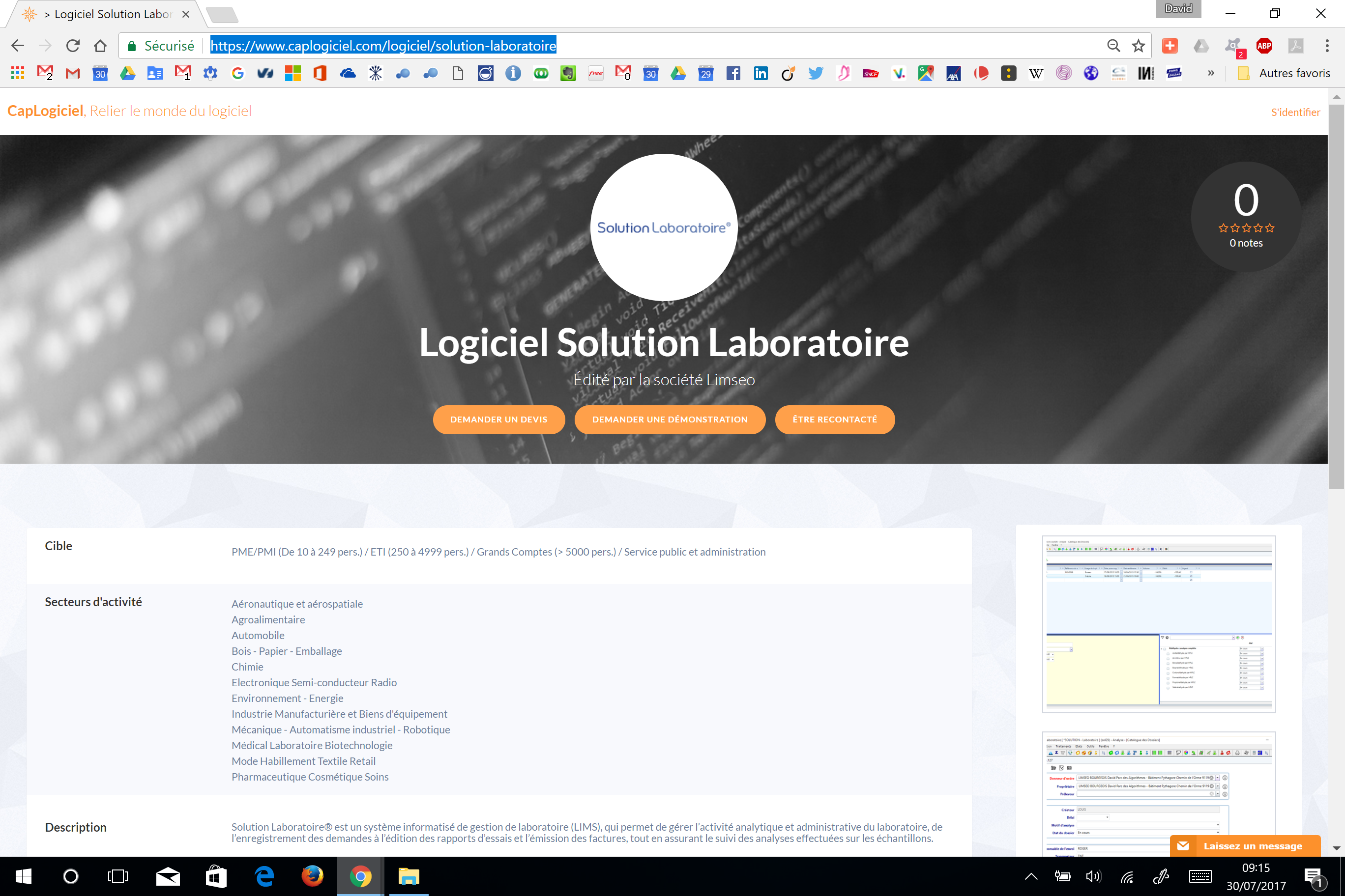 Nous venons de référencer notre LIMS Solution Laboratoire® et notre application tablette dédiée aux préleveurs SolnGo® sur Caplogiciel.