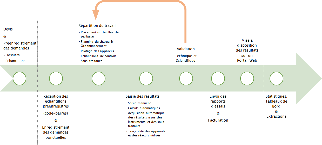 Solution Laboratoire® est un système informatisé de gestion de laboratoire (LIMS), qui permet de gérer l’activité analytique et administrative du laboratoire, de l’enregistrement des demandes à l’édition des rapports d’essais et l’émission des factures, tout en assurant le suivi des analyses effectuées sur les échantillons.